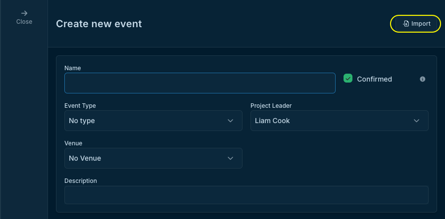 In your usual Create New Event slide out, you can click the brand new Import button in the upper right corner.